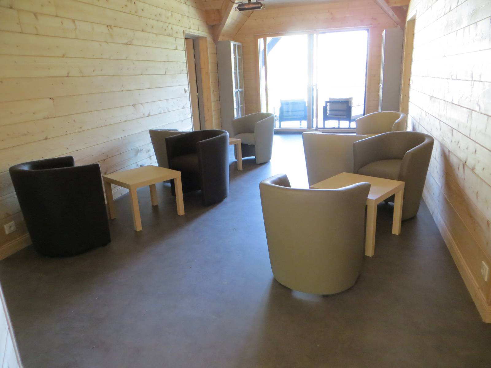 Une pièce de vie avec canapé (convertible), 1 table et 6 chaises, TV